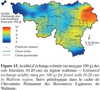 43– par une pratique moins fréquente du chaulage. C'est en Ardenne, en Haute Ardenne et dans une moindre mesure en région jurassique que la situation est la plus critique, avec parfois plus de 75 % des échantillons caractérisés par un pH inférieur à la valeur seuil de 5,5.